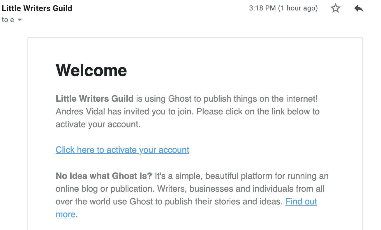 - Activate your Authors account by clicking the link in the email. It will come from Little Writers Guild and look something like the screenshot below...